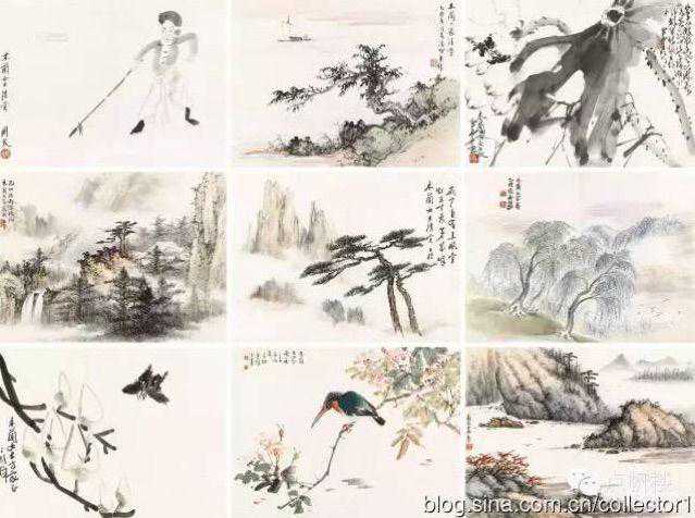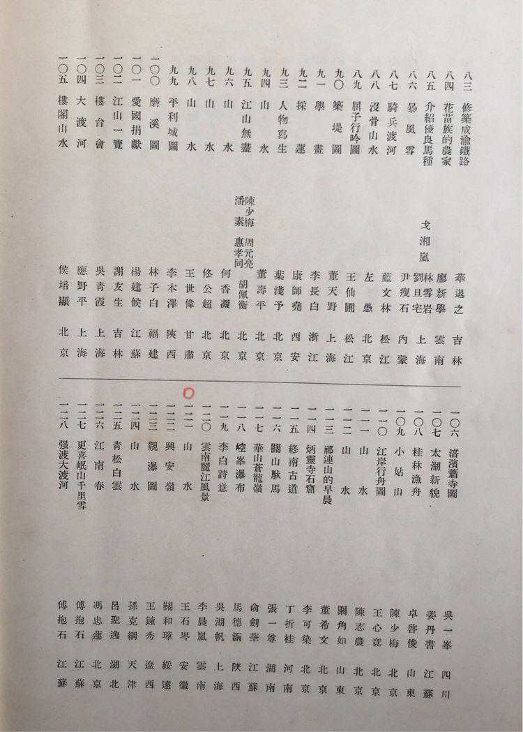 图中标有红圈标志的为王石岑作品,本页中还有傅抱石、吴湖帆、李可染、董希文、刘旦宅、尹瘦石、叶浅予、董寿平、何香凝、杨建侯、吴青霞、应野平等大师。