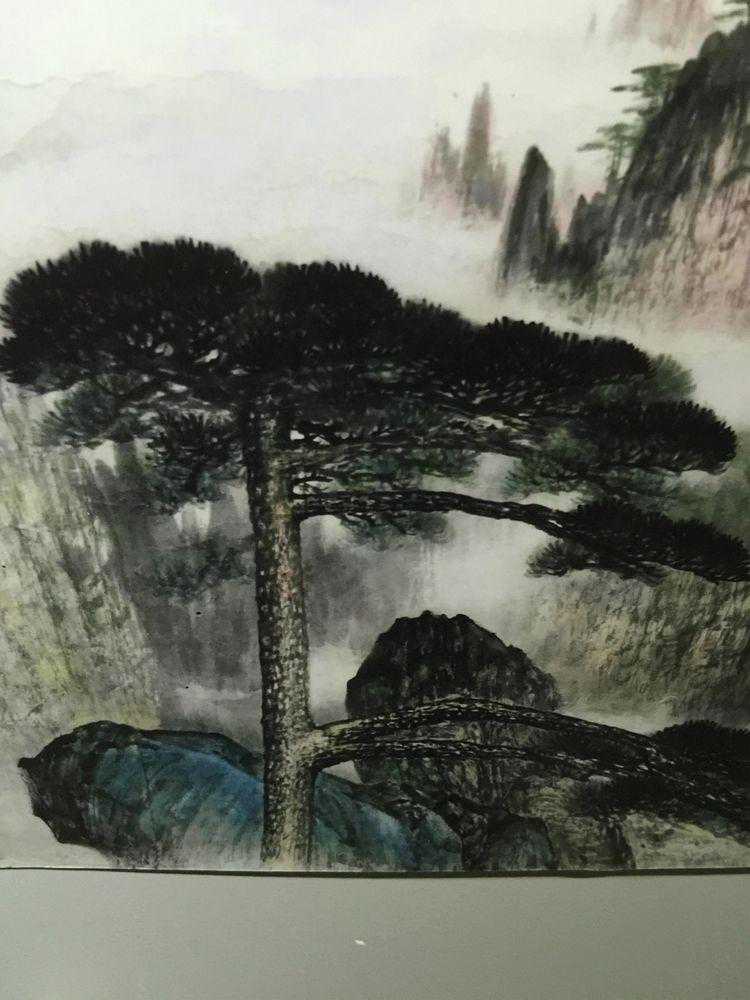 王石岑以黄山、迎客松为题材创作的作品存世极少,这幅迎客松是珍藏安徽师范大学美术学院的大型国画的局部。