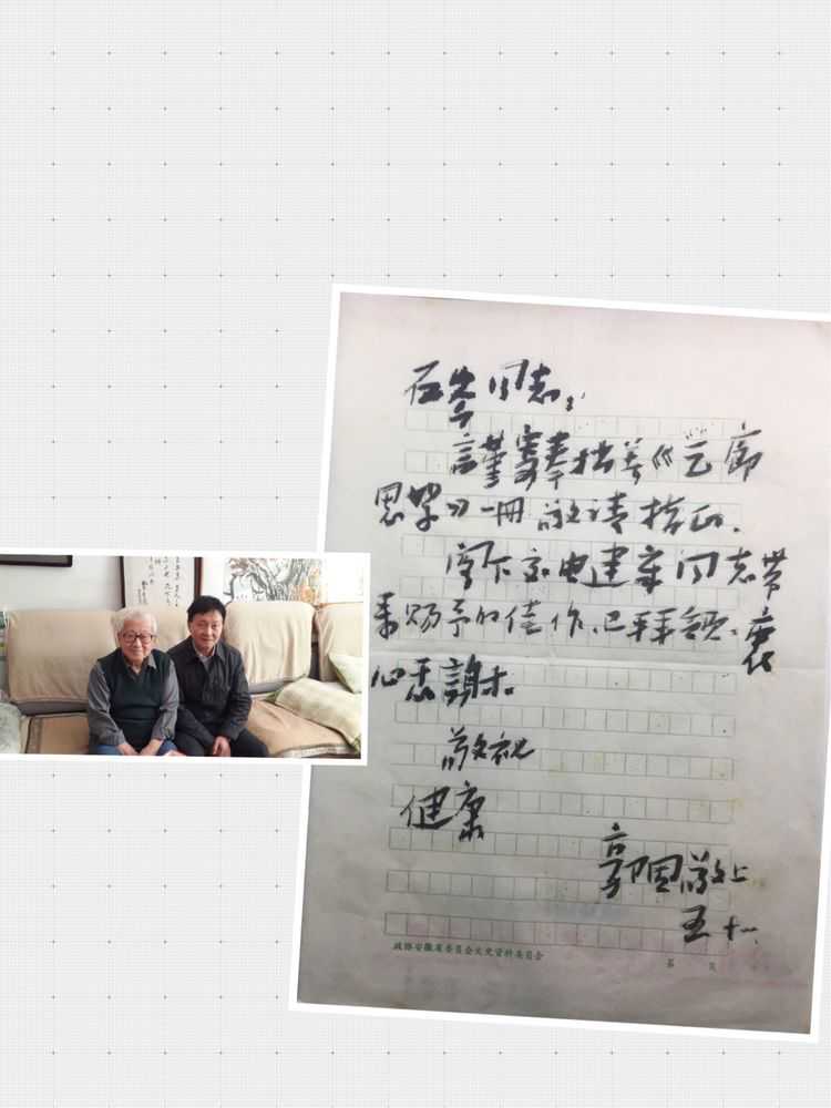 郭因先生与王石岑交往甚密,早年互有赠送作品。2014年春我就是带着郭老的这封信,拜访了郭老并请郭老给纪念展写前言。当郭老看到了当年自己写的亲笔信,激动不已连声答应。郭老写的《信笔所之,风情万种》王石岑画展前言也就诞生了。