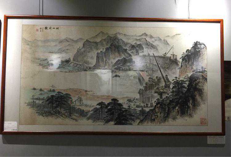 这是王石岑在创作大型壁画巜梅岭初晴》,这幅壁画长期悬挂在合肥骆岗机场,该画气势恢弘,震撼心灵。现收藏在安徽机场管理局的大型保险库。梅岭初晴》作品中,体现其对自然的描绘,融入了对人类创造力的歌颂。画面中高峡平湖,群峰环抱。雄伟壮观的人造水库大坝,隐显于深山茂林中的水电站,耸立云天的高压电线架……真实而朦胧,其诗意般的浪漫主义情调,组成一部人定胜天的交响曲!反映出社会主义建设事业的蒸蒸日上,歌颂了人民战天斗地的精神风貌。
