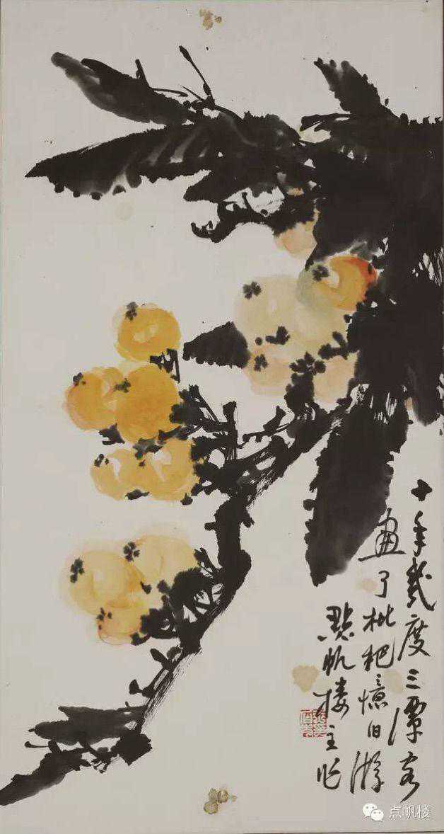 王石岑才华横溢浑身都充满了艺术细胞,有时候一件小事都能激发老人的灵感,有一次我从皖南山区出差带回枇杷一家人都很高兴,老人当即创作一幅精品画作(枇杷)其中提到了几次旧游和故交。