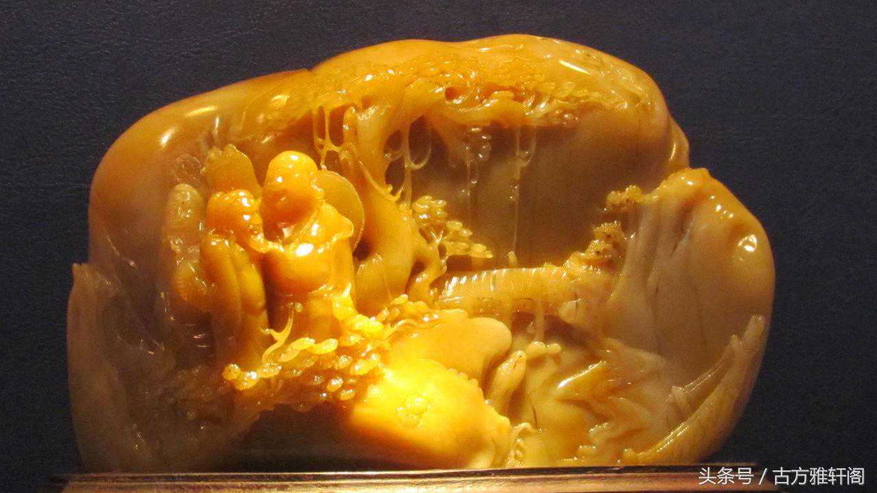 7、黄金耀:黄色,质地纯净,温润脆软,为青田石中珍品。