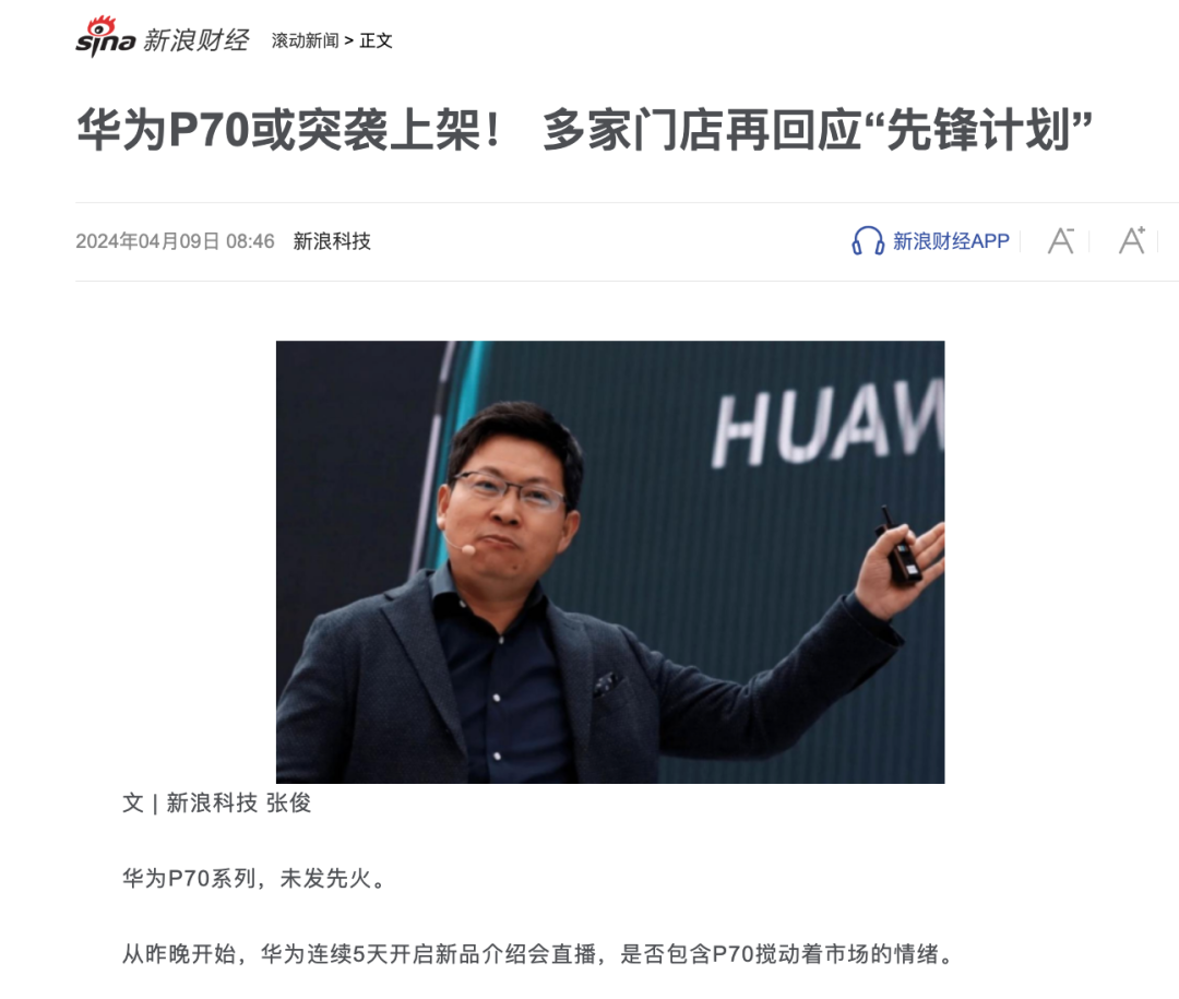 按照这份报道中的说法,全新的华为P70系列手机有可能不举办发布活动,而是直接上架官网商城,开启“先锋计划”销售。