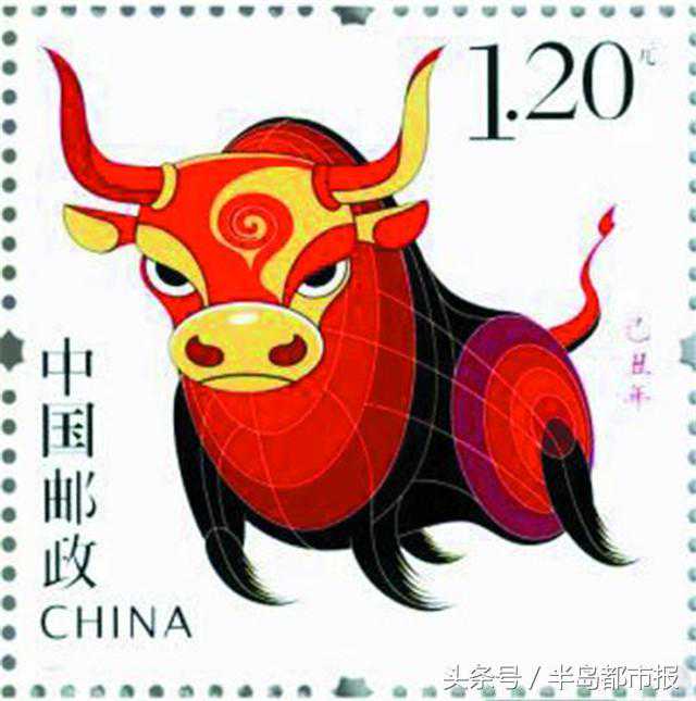 2009《己丑年》生肖邮票为一套一枚,面值1.2元,是我国发行的第三轮生肖邮票中的第六套。此套牛票为一欢奔的火牛,寓意奔腾红火和牛年兴旺。牛年生肖邮票与第三轮生肖邮票的风格一致,画面充满虎虎生气和步步威武的节奏感,笔端细腻,色彩鲜活。