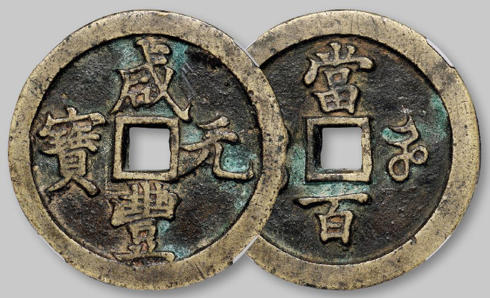 咸丰帝在位的11年,不论他的政治贡献如何,多年的战乱和屈辱外交,都使得国内经济每况愈下,通货膨胀严重,百姓深陷水深火热之中。咸丰时期,为了维持庞大的军事开销和战争赔款,清政府不得不发行大量货币来解决财政问题,但是当时并没有纸质的法币,加上铜原料的紧缺,中央政府另辟蹊径,开始铸造大额铜币—咸丰重宝、咸丰元宝。