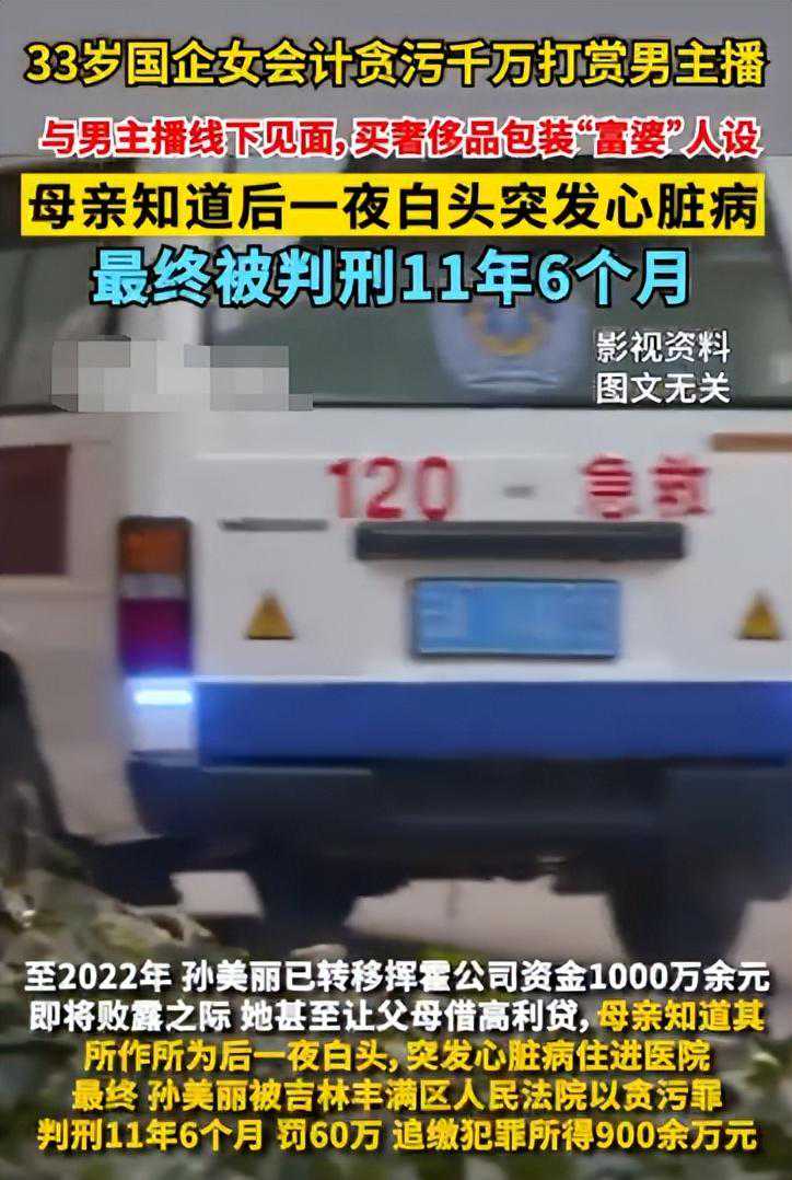 孙女士为了打赏主播花费几百万,甚至都受到了刑罚,在监狱里服刑了。
