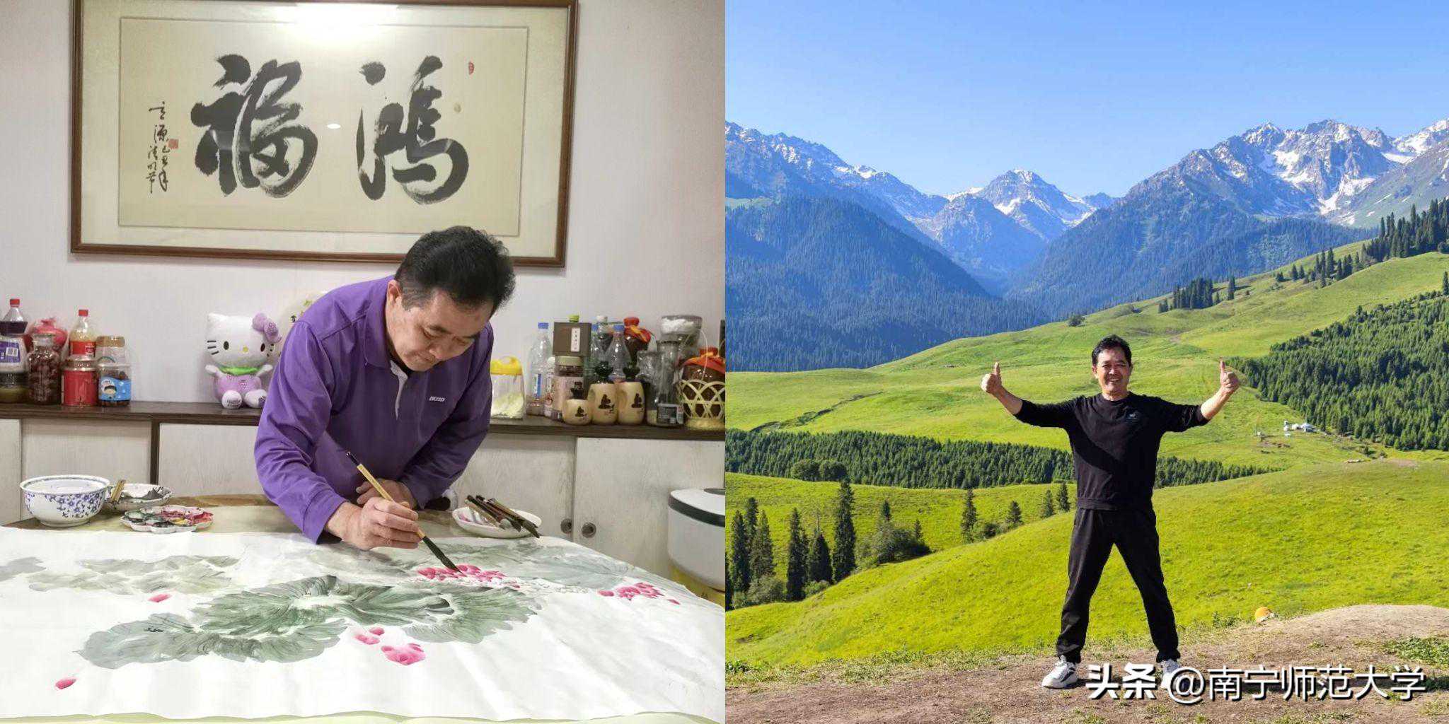 退休生活:左图为2022年4月,作者家中作画;右图为2023年6月作者新疆旅游
