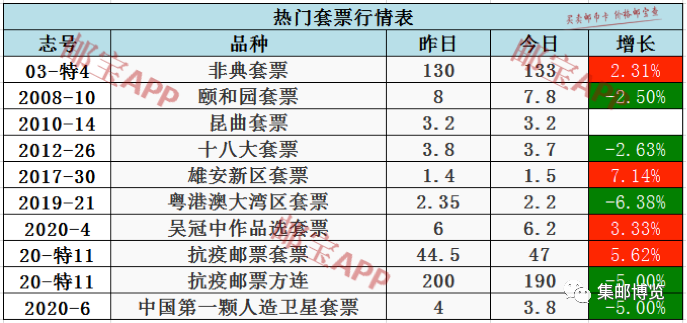 抗疫邮票大版昨日行情为1115元,今日价格为1120元,上涨0.45%。