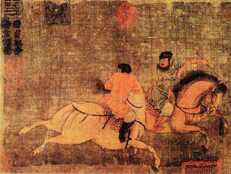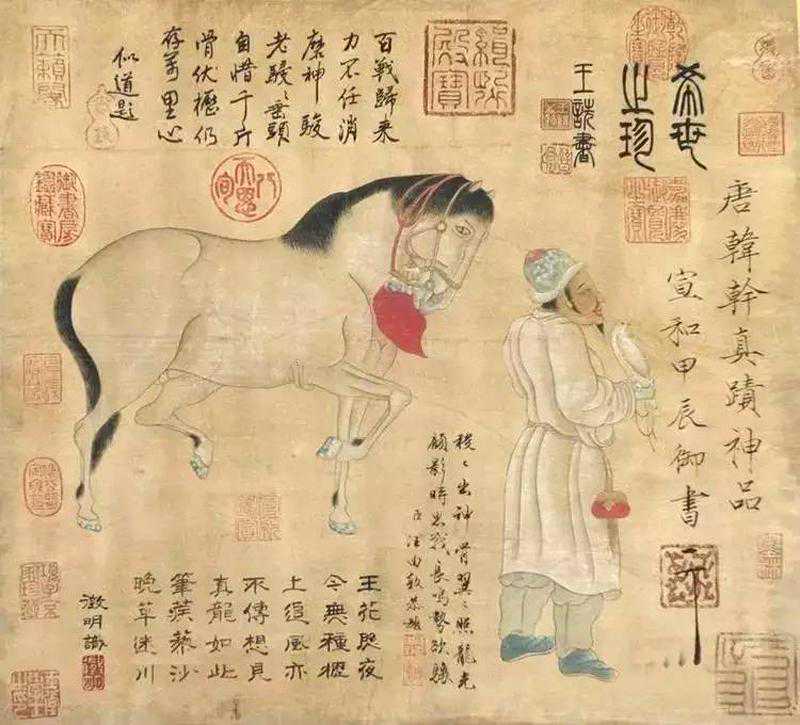 在唐代画家中,韩干的《相马图》、《牧马图》、《照夜白图》,韦偃的《双骑图》、《牧放图》,都是这一时期的精品。《牧放图》中共画马1200多匹,牧马者140余人,构图精妙、聚散有序,顾盼多姿、和谐统一,场面之大旷世少有,堪称一绝。