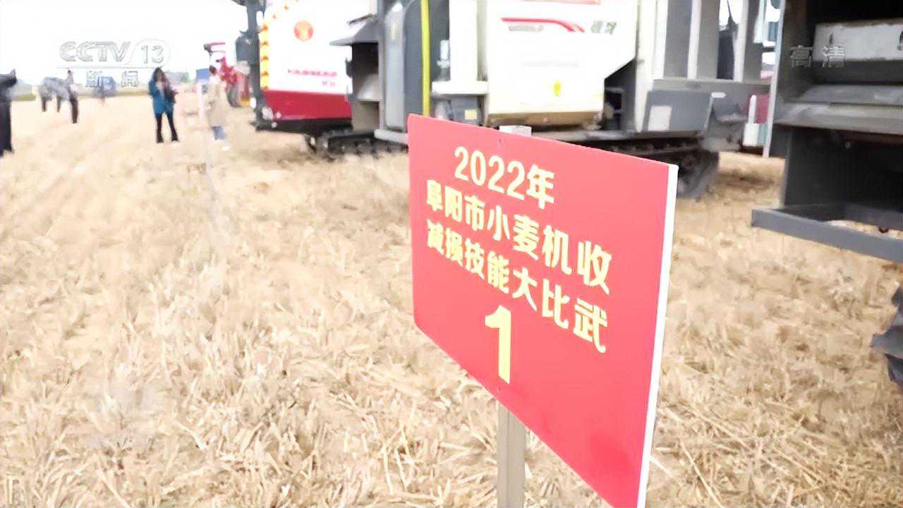 在安徽阜阳阜南县举办的全市机收减损大比武现场,10名农机手驾驶不同型号的联合收割机,在规定时间、区域内进行收割作业。专家评定组对农机手的收割成果、麦茬高度等数据进行监测,并通过捡拾麦粒,称重后测算损失率。