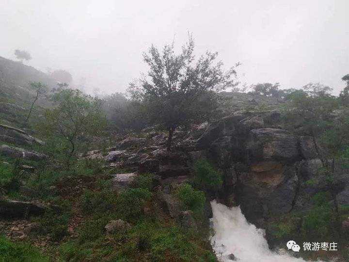 就在昨天下午约6点的时候小编一行来到山亭区凫城镇东凫山村看泉:每逢大雨过后白水泉都会从山顶喷涌而出,波浪翻滚,呼啸下山,气势如虹,我们远在两公里左右的地方就看到了上坡上一道白色的水链,到了近旁就听见哄哄的水声。