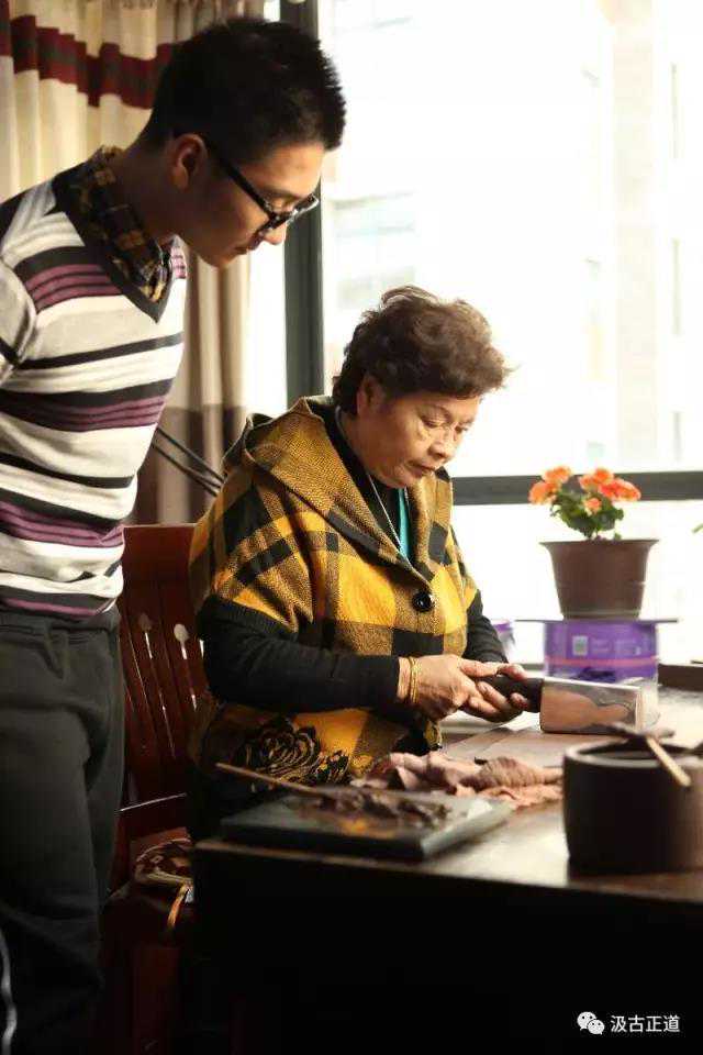 正是因为心中难以割舍的紫砂情结,2012年,鲍家在南京邮电大学毕业后,还是选择回到“鲍鼎泰”,传承家族的全手工制壶手艺,不为俗世金钱所动,不为外界浮躁所扰,专心制作传统壶型。在祖母张红华(中国陶瓷艺术大师),父亲鲍峰岩的严格要求和指导下,鲍家开始了学习“掇只壶”传统工艺技法的岁月。
