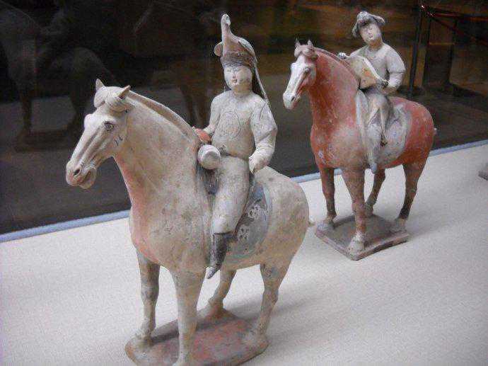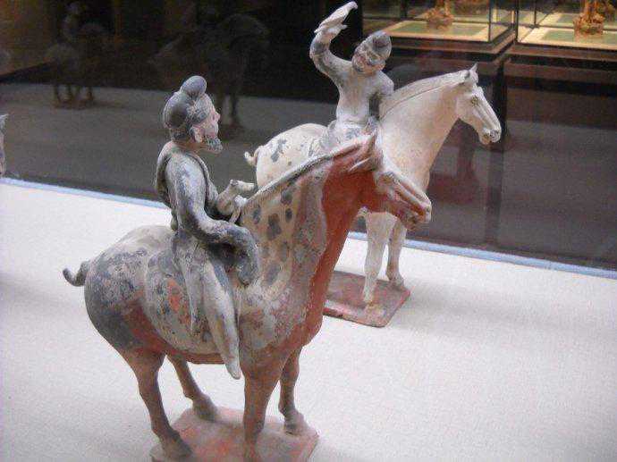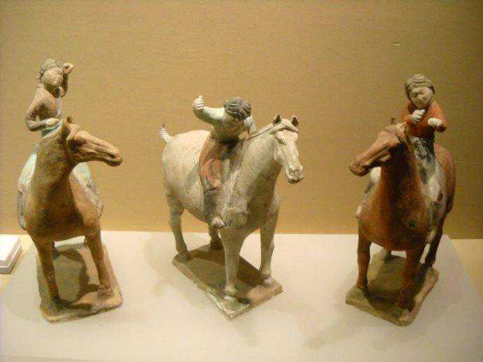 唐代彩绘三彩釉骑马陶俑赏析博文中展示的是唐代时期的“彩绘三彩釉骑马陶俑”。陶俑有:骑马奏乐陶俑、骑马打马球陶俑、骑马胡人陶俑、骑马狩猎陶俑、骑马武士陶俑、骑马戴帽女子陶俑。