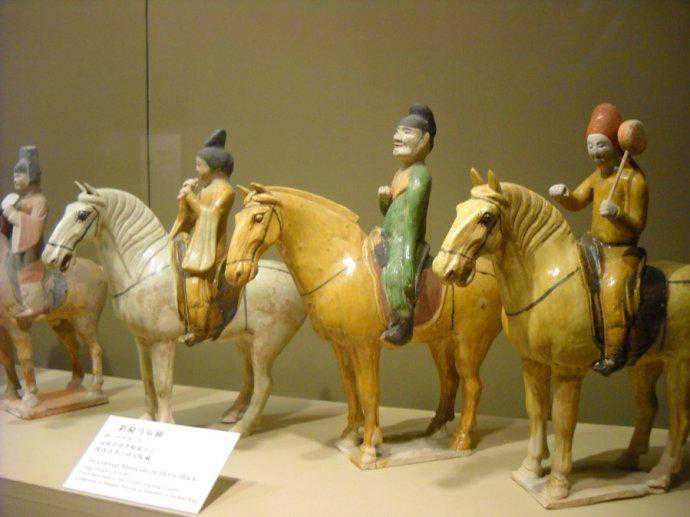 唐代三彩釉骑马奏乐陶俑