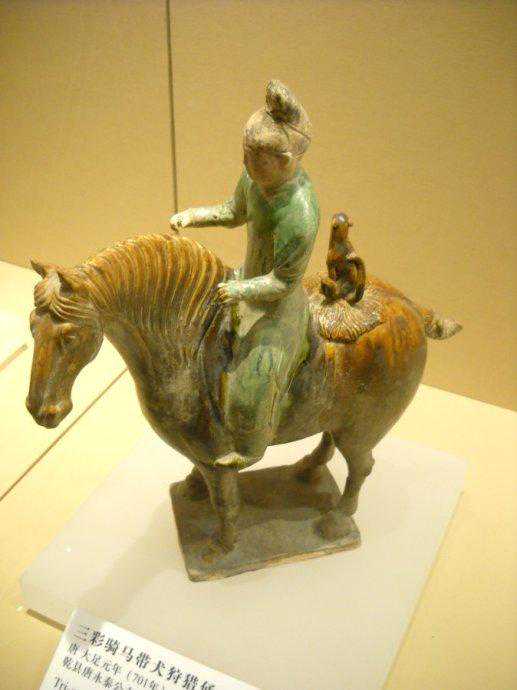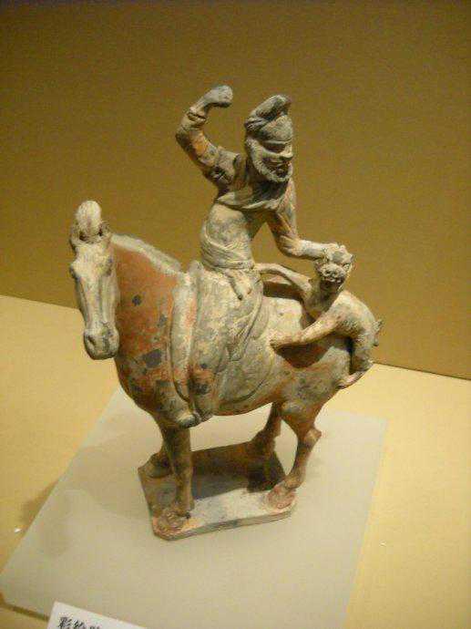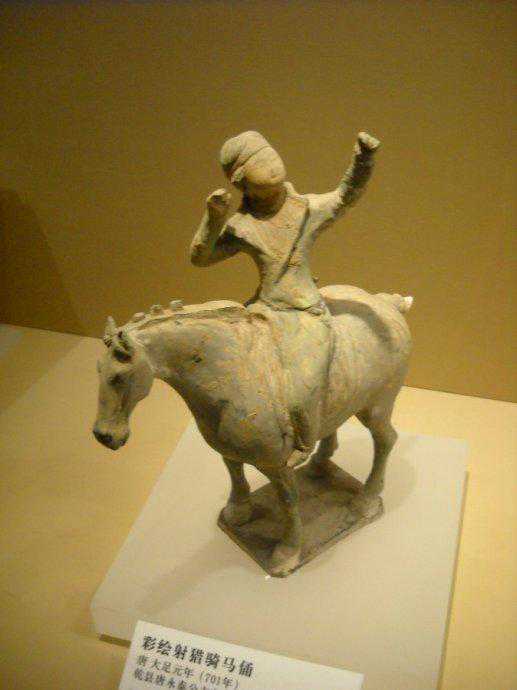 唐代彩绘骑马狩猎俑