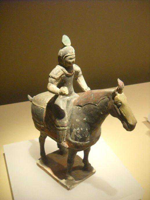 唐代彩绘贴金铠甲男骑马陶俑