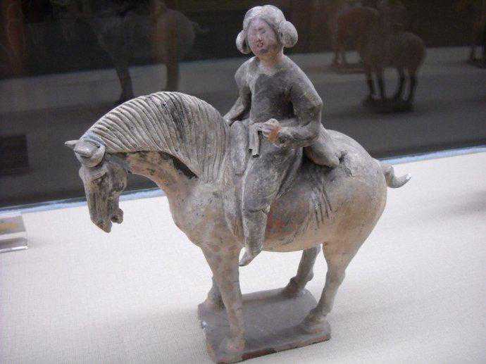唐代彩绘骑马女俑