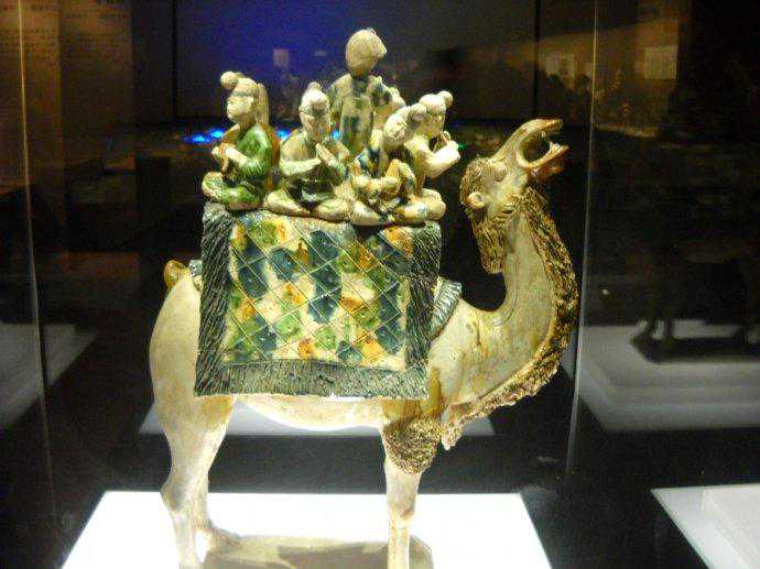 唐代三彩釉载奏乐俑陶骆驼