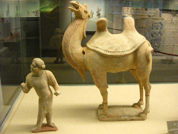 唐代彩绘牵驼俑与陶骆驼