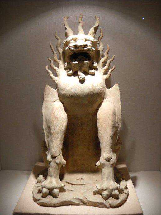 唐代贵族墓葬多置镇墓陶兽于墓室门口或四角,他们相信面目狰狞的镇墓陶兽能保护墓主,驱走邪魔妖道,防止盗墓者入侵墓室重地,属压胜之物。