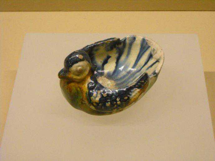 唐代三彩釉鸂鶒陶酒卮
