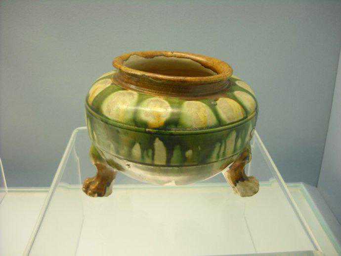 唐代三彩釉陶注子唐代绞胎釉三足陶罐