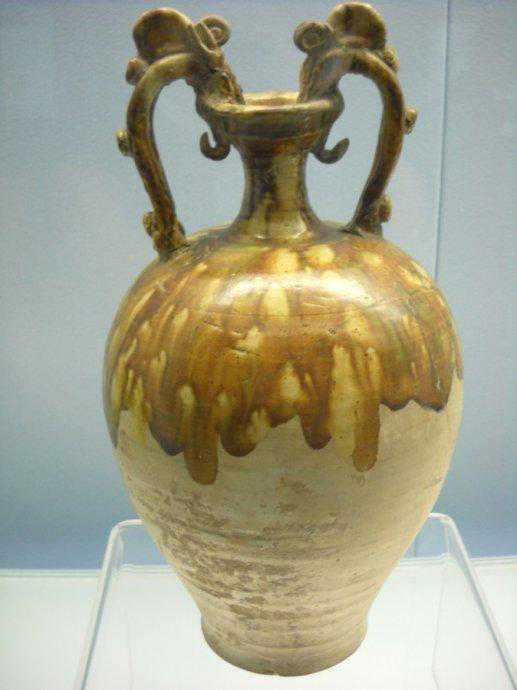 唐代三彩釉双龙陶尊