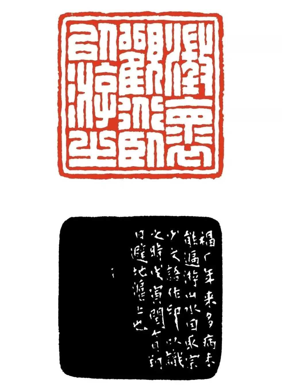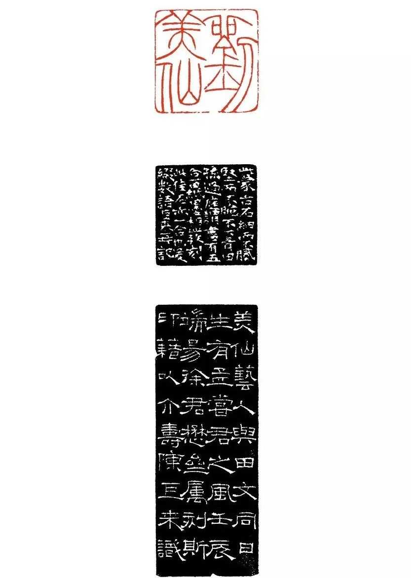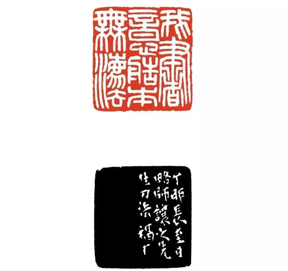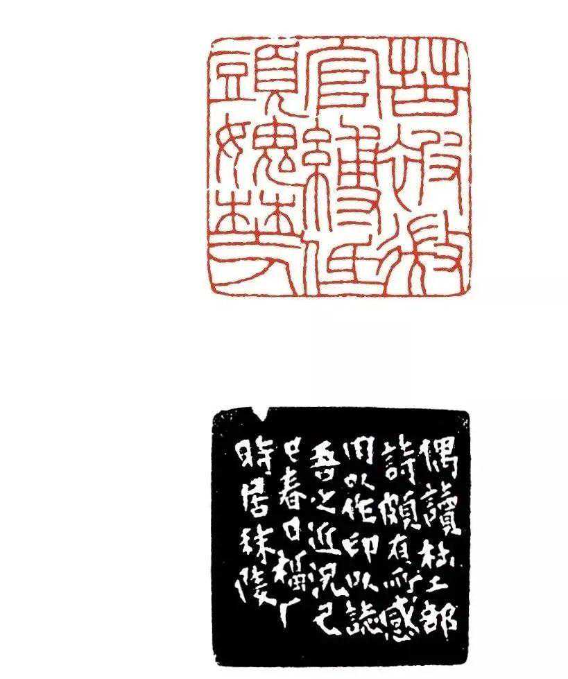 线条上,陈巨来的挺拔度更高,圆润性更强。从印面的深度讲,线条与空白部分的高度差如悬崖峭壁。