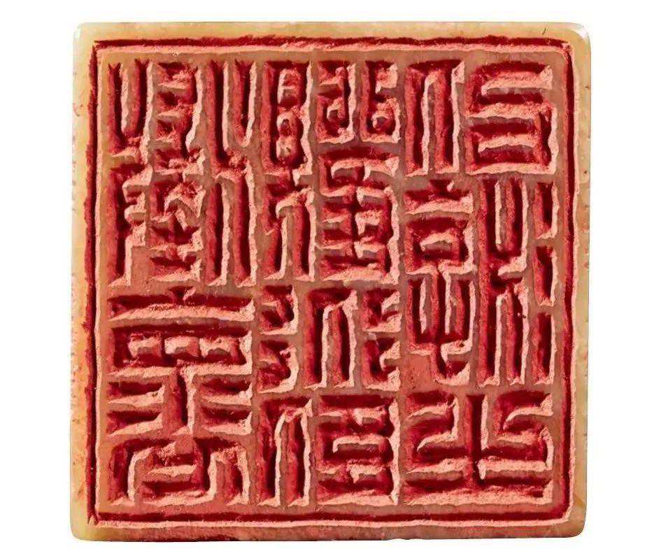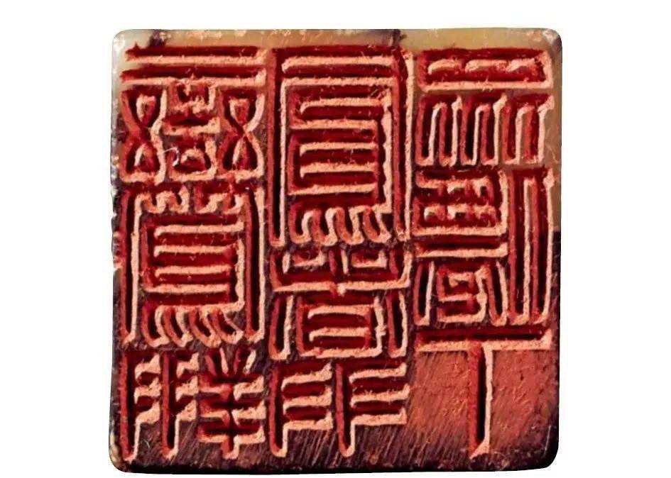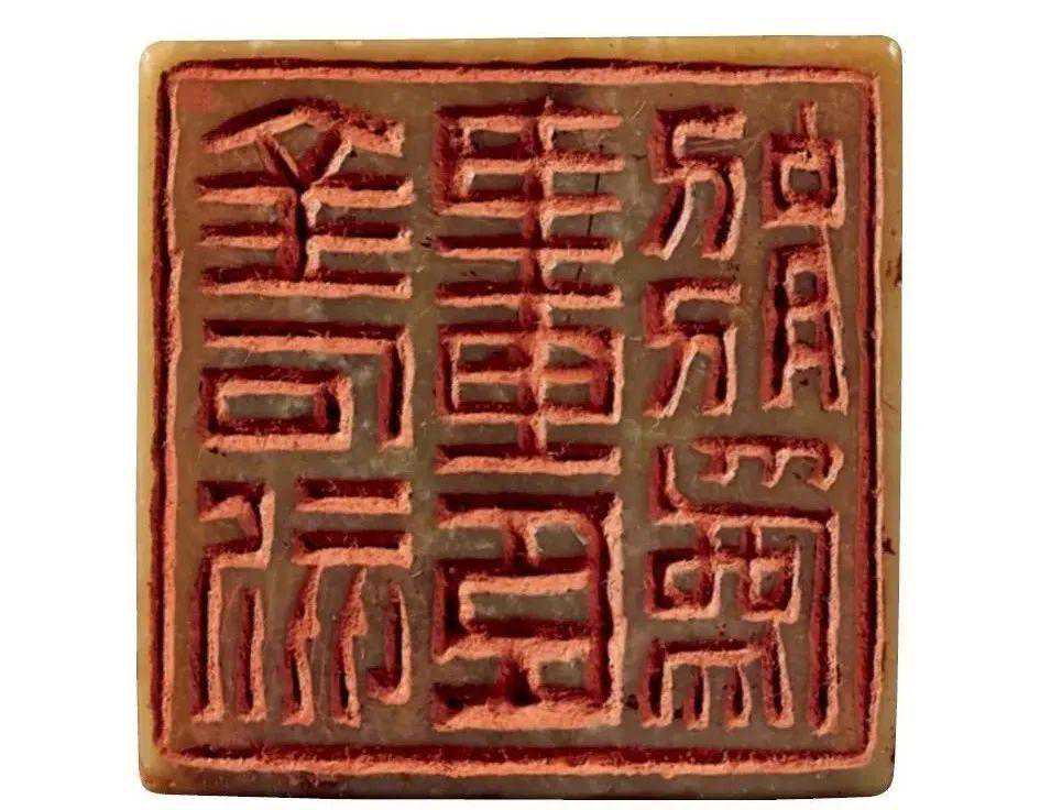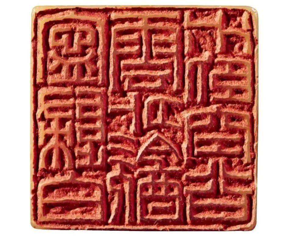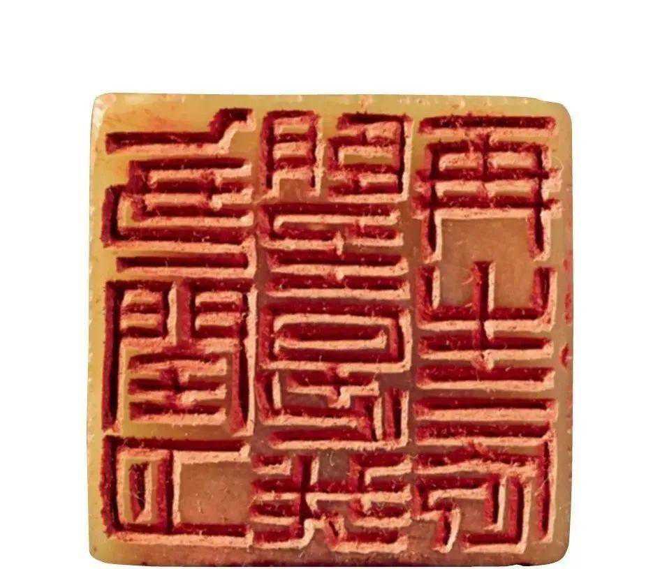 空间感上,陈巨来的文字处理更偏重安宁,比如他的九字印,“吴湖帆潘静淑珍藏”印,每一个字都是外方内圆,字与字,行与行之间有清晰的分界空隙。