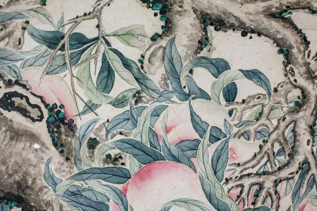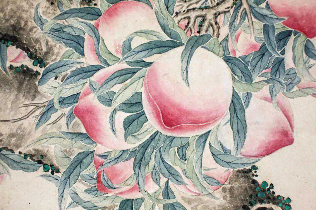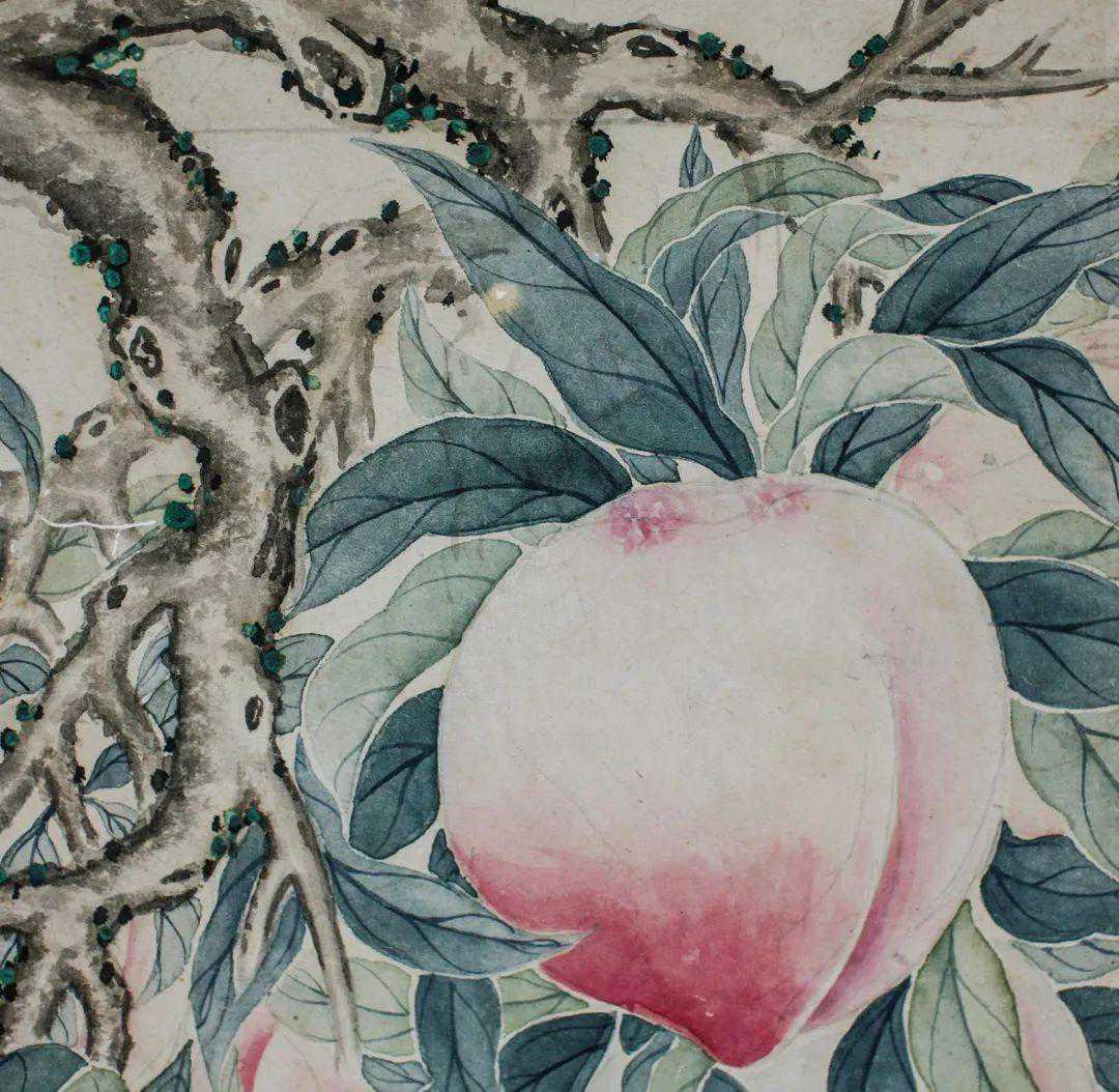 所以,湖社是非常重要的,这次给大家带来两件金城,一件绢本水墨《九如图》,实物真的好,但是拍不出来,哭;另一件寿桃,可以说是相当讨喜。