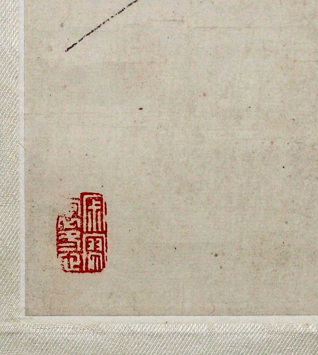 冯忠莲是陈少梅的学生。她的笔下,比陈少梅还要多一份温婉细腻,这件《猿立松间》在猿猴的神态和毛发上处理得十分细腻。猿猴颔首的动态和眼神,以及毛发严整有次序,可以看出是难得的一幅用心之作。