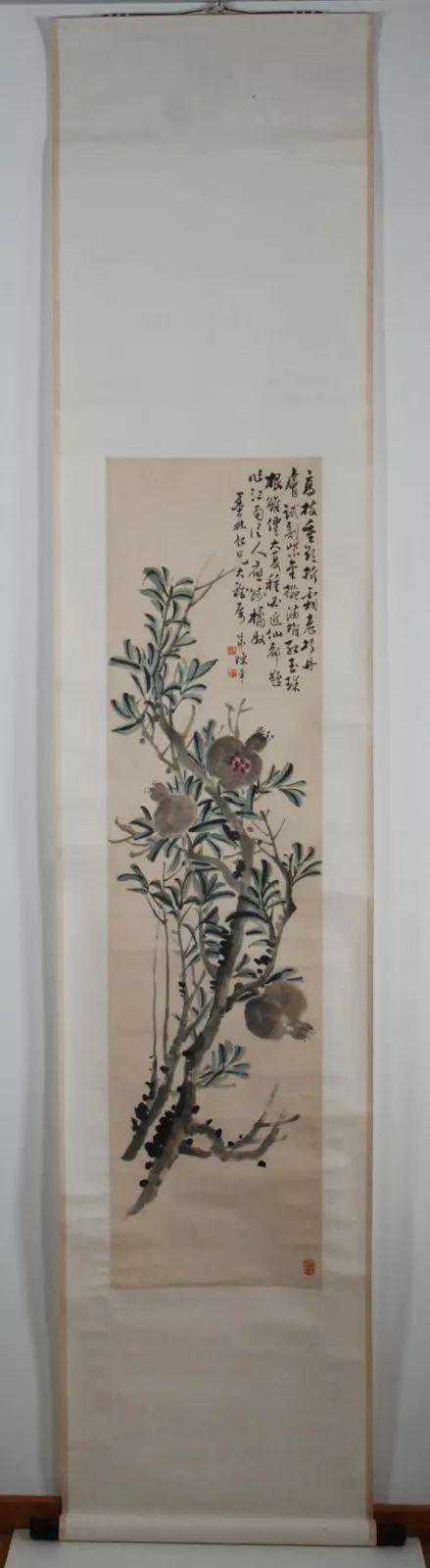 另外还有带出版的陈半丁石榴,刘定之裱的叶恭绰书法,用的是刘氏专用湖水蓝绫子。胡佩衡的山水也是一派苍茫,大家用笔,气息很好。更少不了我们溥二爷的两件,一件山水出版在《溥心畬年谱》中,堪称标准;一件花鸟非常清甜,十分引人。
