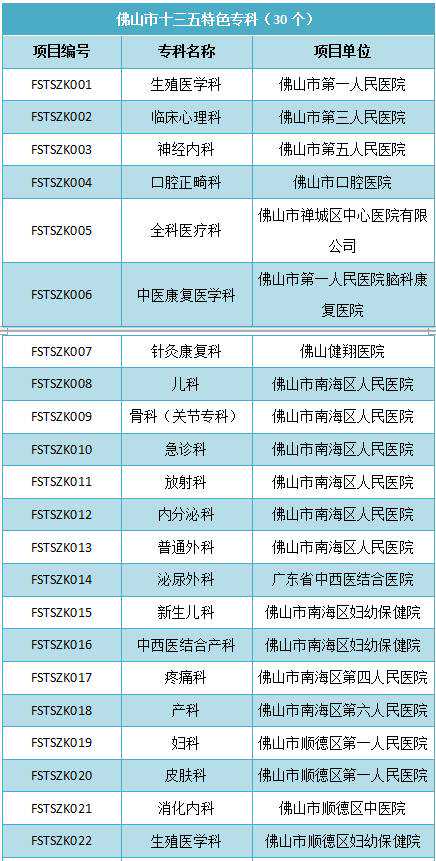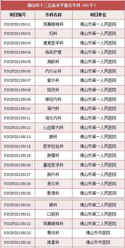 除了以上这些有名的专科外,随着相关文件的出台,佛山已启动150个“十三五”医学重点专科和特色专科建设。其中,高水平医学重点专科60个、特色专科30个。