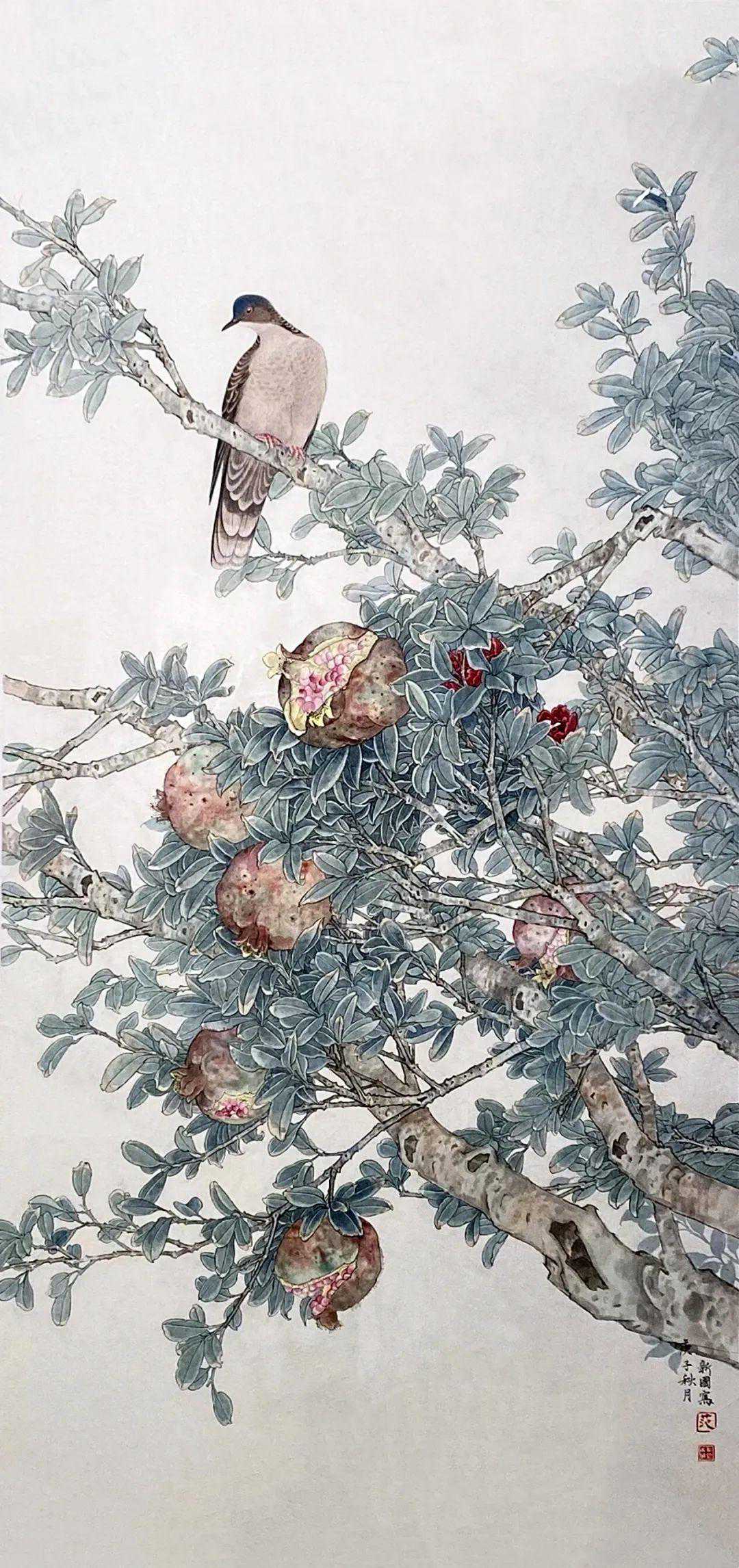《石榴—斑鸠》137cmx67cm纸本设色2020年