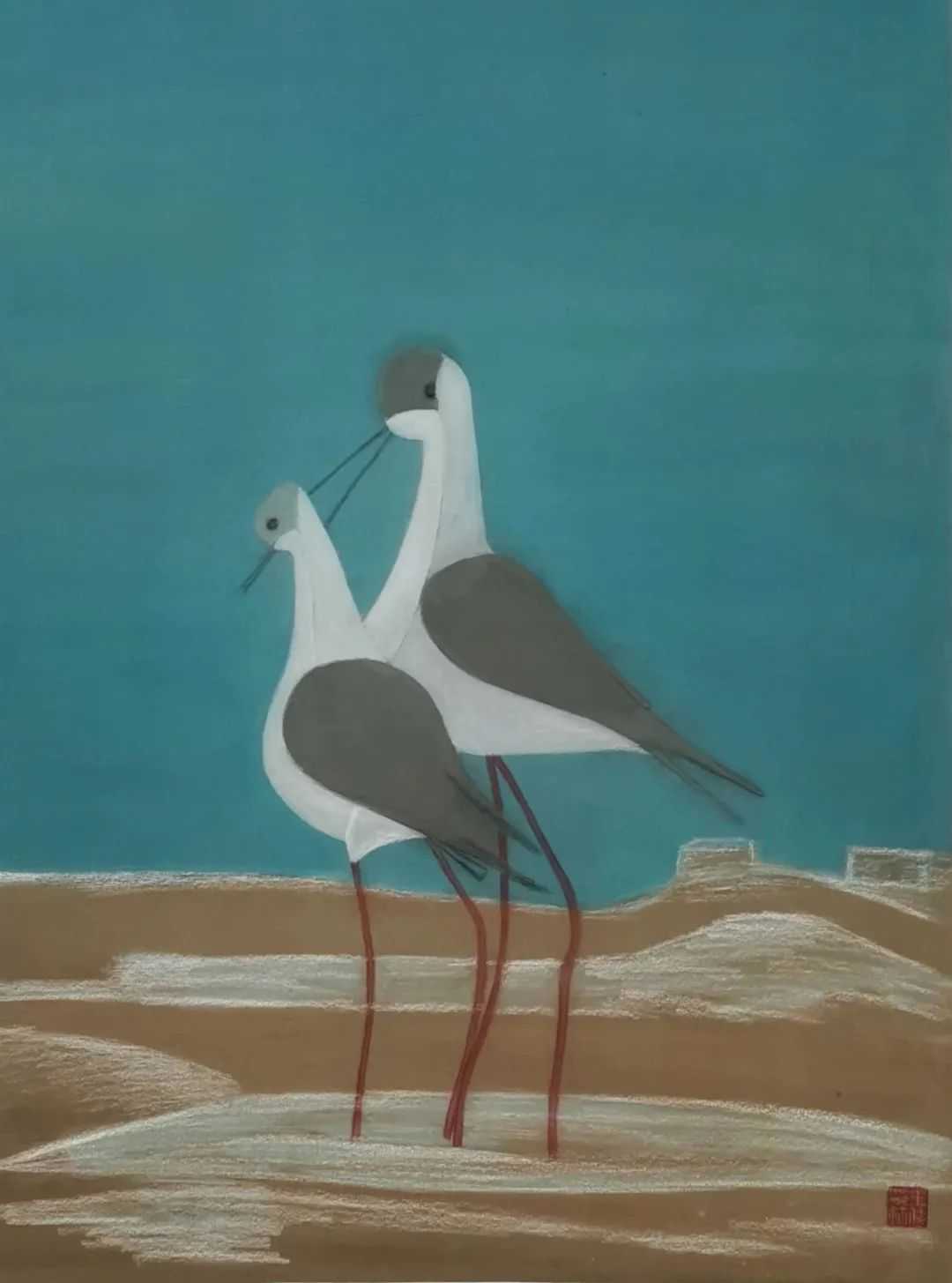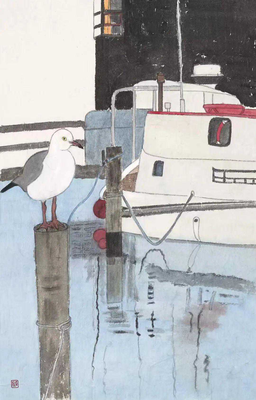 《海岸—海鸥2》90cmx50cm纸本水墨2023年
