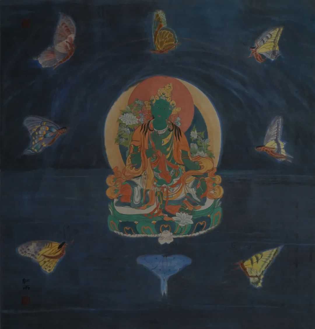 《圣灵之光,绿度母》97cmx93cm宣纸、矿物色及水墨2012年