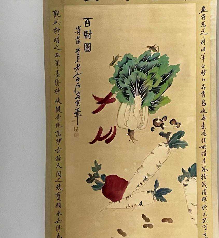 菜贩不仅不换,还扬言要揍他;菜贩一顿咆哮弄得齐白石摸不着南北,很尴尬,只得挟着画的白菜画灰溜溜的走了,走到大门口,他侧身说了一句话“嗨!真是有辱斯文!