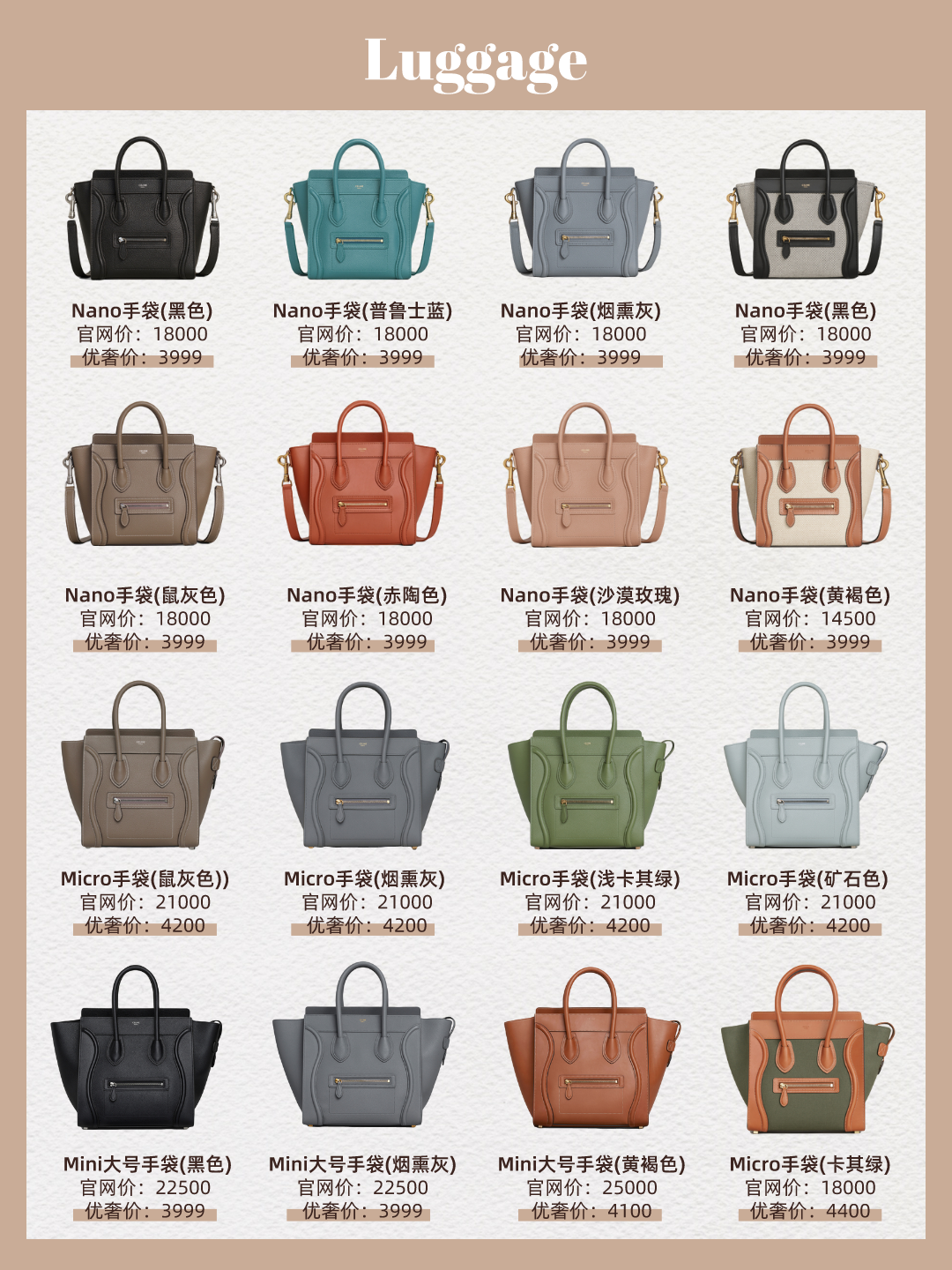 Celine家人气最旺的豆腐包,绝对是必入的百搭时尚款,时尚博主人手一只的itbag。