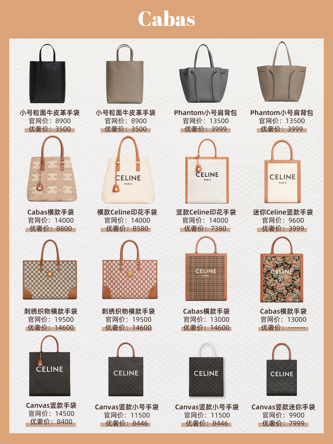 Celine经典简单的托特包型又推出了超多size,迷你竖版Cabas更是备受偏爱~