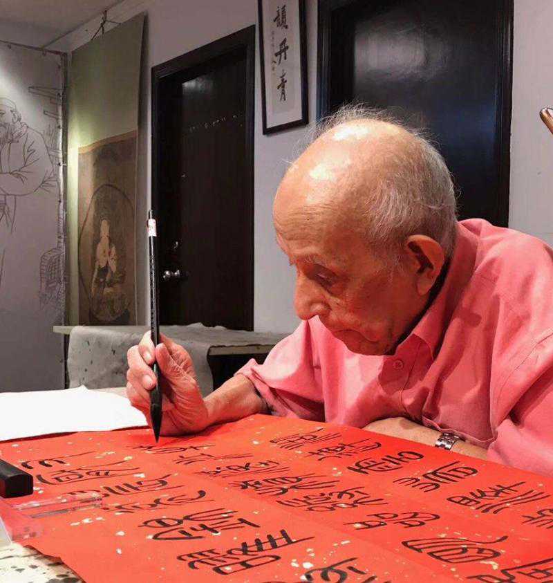 我和高老自1978年相识于书画社、朵云轩,整整40年。我们共同走过了祖国改革开放的40年历程。记得有一次社里开笔会,刚来社的高老给宾客写书法,我当时还是一个年轻人,也怯生生地问:“高老师能不能给我也写一幅?”记得他当场给我写了一幅很大的篆书“谦受益,满招损”,使我十分感动,受益终生。后来我当了社长,每年去看他,给他拜年,也是亲密无间。最有意思的是我从不抽烟,但每次他一定叫我抽他的中华烟,抽着烟在一起嘻嘻哈哈,谈工作,忆往事,也扯山海经,度过了许多愉快难忘的时光。我当社长时只有三十几岁,在工作中也会碰到烦恼和困难,但每次与高老见面,我就被他乐观的人生态度所感染,精神为之一振。高老对社里的工作和我分管的工作也很支持,有求必应,从不打回票。2011年,上海市政协文史委在台北举办纪念辛亥革命100周年的活动,为了在当地文化艺术界扩大影响,我代表政协去请高老和林老(林曦明先生)赴台北,高老当时已过9旬,听闻后二话不说就奔赴台北,与当地政界、商界和艺术界人士见面,在当地诚品书店当众写书法,为两岸文化交流尽心尽力,为上海赢得了荣誉。