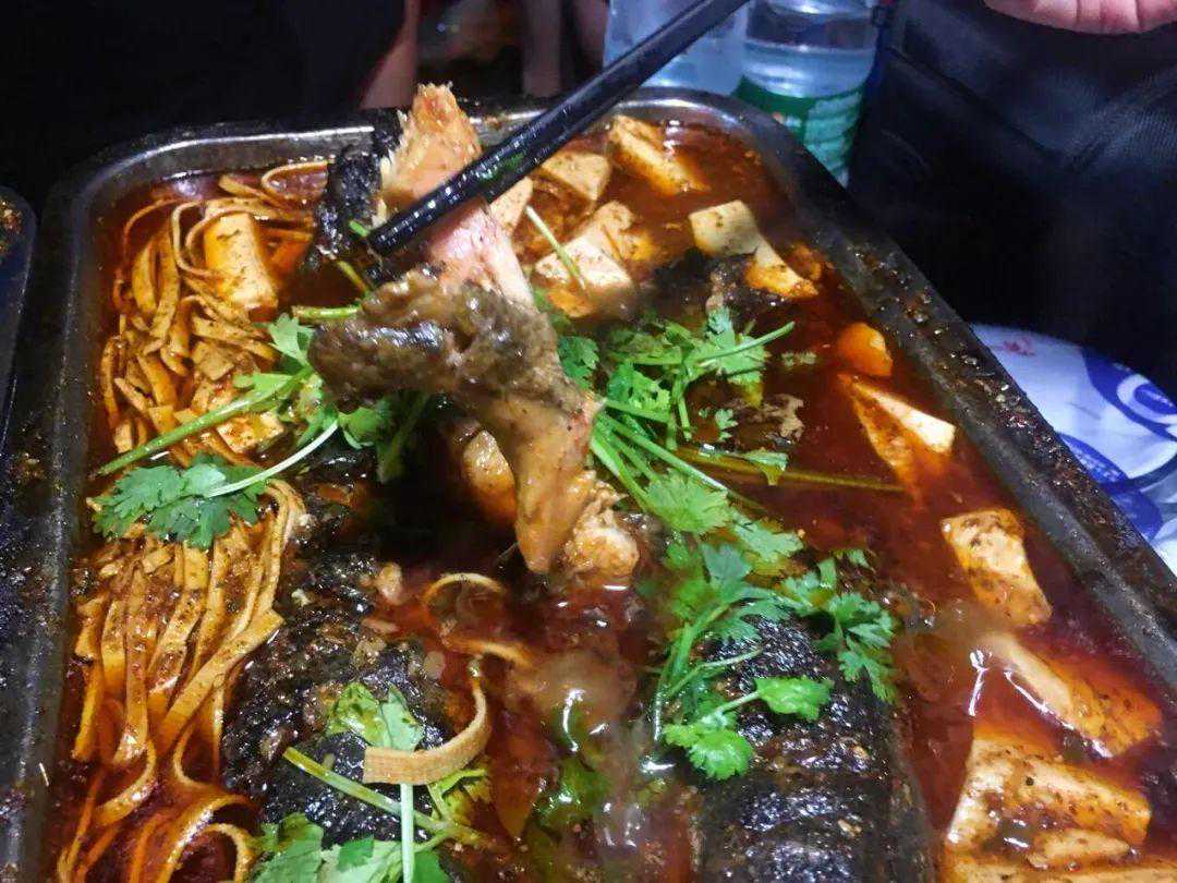 烤鱼肉质超嫩,没有多余的刺~在烤鱼中加入多种打底菜尤其像豆腐、千张越煮越有味道,吃了会上瘾的感觉!